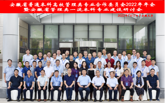 7月16-17日, 安徽省普通本科高校管理类专业合作委员会2022年年会暨安徽省管理类一流本科专业建设研讨会在安徽大学召开来自省内高校50多位专家学者院系领导、专业负责人以及企业代表等参加了线下会议,省外知名专家学者应邀线上参会。院副院长周世军、工商管理系主任李向前经济系主任陶善信应邀参会。