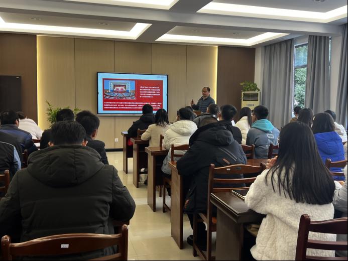 为深入学习贯彻党的二十大精神,2月20日下午,商学院召开党的二十大精神学习宣讲会议,邀请马克思主义学院倪松根副教授作了题为《以中国式现代化全面推进中华民族伟大复兴》的专题报告。学院全体党支部书记、科级干部、辅导员教师、师生代表参加了本次会议。