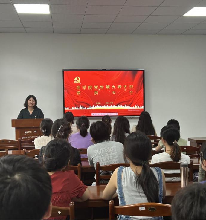 9月20日下午,商学院学生第九党支部于汇文楼B114会议室召开支部党员大会,会议由支部书记刘长秋主持。