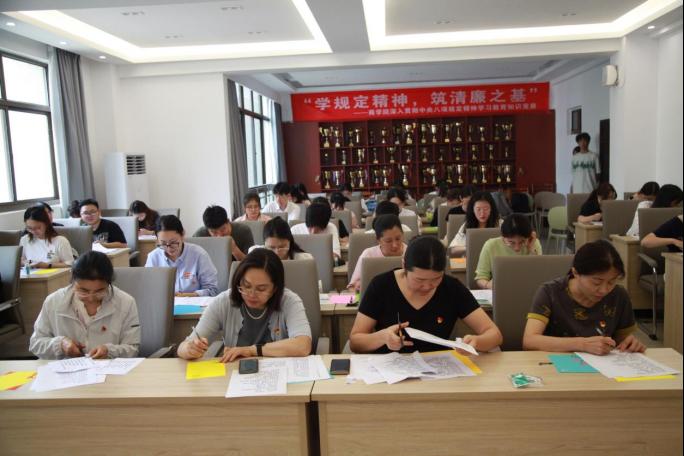 为深入贯彻中央八项规定精神学习教育,加强作风建设,6月13日上午,学院办公室党支部、学生第一、第八、第十、第十一党支部联合举办了“深入贯彻中央八项规定精神学习教育拼贴诗会”主题党日活动,共有来自5个师生支部的党员、积极分子等40余人参加。