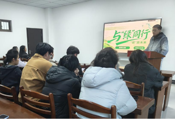 首先,徐韬开展党的二十届四中全会精神宣讲。他以“双碳”战略为切口,从政策解读、大国担当、先锋故事、校园实践四个维度,系统阐释了国家绿色发展的顶层设计、中国在全球气候治理中的积极作为、绿色先锋人物的感人事迹以及青年学子践行低碳生活的具体路径。