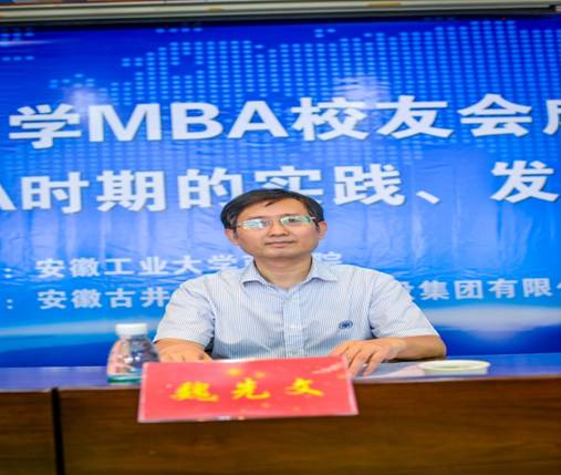 魏先文为大会致辞,他首先对会议的顺利召开表达了诚挚的祝贺,并介绍了安徽工业大学的办学历史、教育特色以及近两年来得发展状况、学生就业工作取得的成就。魏先文在发言中充分肯定了商学院和MBA教育中心在适应社会发展,提高学员实践等方面教学成果。最后,魏先文向新当选的首届MBA校友会会长授MBA校友会会旗。