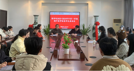 11月16日上午,商学院在汇文楼B304会议室召开了2023-2024学年第一学期期中教学检查师生座谈会。院党委副书记、副院长蒋磊、副院长刘艳华以及各系主任、骨干教师代表、教学干事和各年级学生代表参加了本次座谈会。座谈会由刘艳华主持。