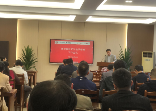 为全面落实立德树人根本任务,提高商学院研究生培养质量,10月23日下午,学院在汇文楼B204召开了全院研究生导师、任课教师大会。院长章铁生、副院长李伟军、全院研究生导师、研究生任课教师以及研究生教育与管理办公室全体人员参加此次会议。会议由李伟军主持。