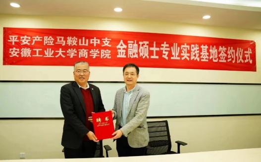 4月30日上午,商学院副院长李伟军、MF教育中心主任刘丽萍、金融与统计系副主任梁昌一赴中国平安财产保险股份公司马鞍山中心支公司,与平安产险马鞍山中心支公司总经理曹鹏辰、副总经理张祥宏、副总经理沈陈兵、平安产险安徽分公司人事部主任程泽宇共同出席了金融硕士专业实践基地挂牌及校外行业导师聘任仪式。