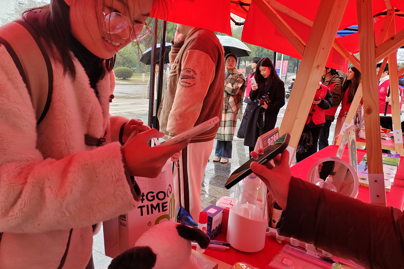 活动第二天,在义卖物品阶段,志愿者们根据物品的特性与需求进行合理的定价与陈列,并轮流值守摊位,向过往学生积极推荐和介绍,现场很快吸引了大批同学前往摊前挑选着自己心仪的物品。同学们在享受购物体验的同时也为此次义卖活动积累了许多爱心善款,这些爱心善款将通过安徽工业大学研支团捐给西部贫困地区的孩子们。