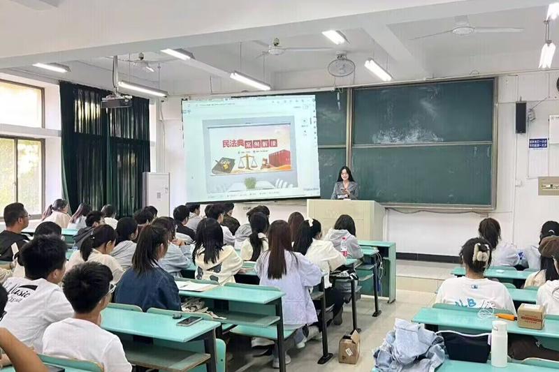 班会上,同学们首先观看了民法典宣传片。随后,由各班团支书通过PPT对民法典的重要性和应用场景作出详细讲解,内容涵盖人身权、财产权、合同、婚姻家庭、继承等诸多方面的法律规范,进一步引导同学们领悟到民法典对保障美好生活的重要意义。讲解结束后,学生们踊跃发言,纷纷分享自己对于民法典的独到见解和深刻体会。有的同学结合日常生活中的具体案例,生动地阐述了民法典如何切实保障公民权益;有的同学则表示,通过这次班会活动,他们更加坚定了知法守法、争做新时代法治青年的信念。