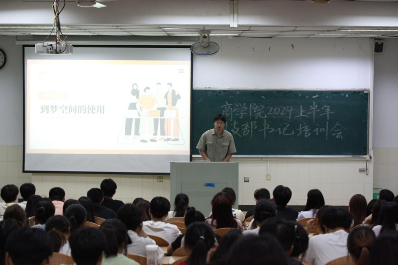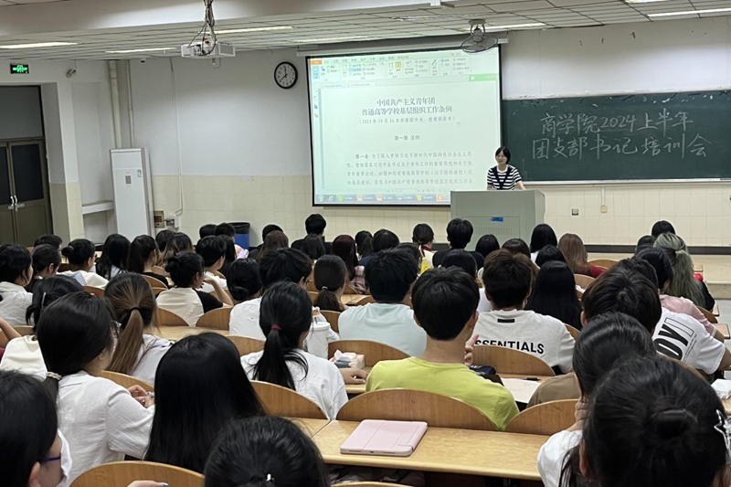 为深入学习宣传贯彻习近平总书记关于青年工作的重要思想,进一步夯实基层团组织建设,切实提升团支部书记理论素养和实务能力,不断提升团的引领力、组织力、服务力和大局贡献度,6月11日晚7:00,商学院2024年上半年团支部书记培训会在秀山校区阶教201举行。校团委书记赵颖虹、院团委书记印路路、院团委副书记刘在春、张舒及学院各团支部书记参加此次培训会。