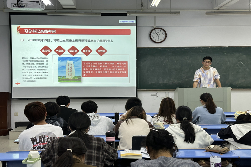 10月17日晚,财233团支部开展理论学习研讨会,团支书孔楚晴、宣传委员汪海燕、纪律委员陈婷婷、组织委员梁子睿通过演示文稿和视频为团支部全体成员介绍了马鞍山建市以前的悠久历史和1956年建市以来波澜壮阔的发展历程,其中重点介绍了1956年至1990年、2010年至2020年和2020年至今的发展阶段,同时回顾我校的历史沿革,带领同学们深入了解历史,不断深化对共产党执政规律、社会主义建设规律、人类社会发展规律的认识,树立远大理想,激发奋进力量。