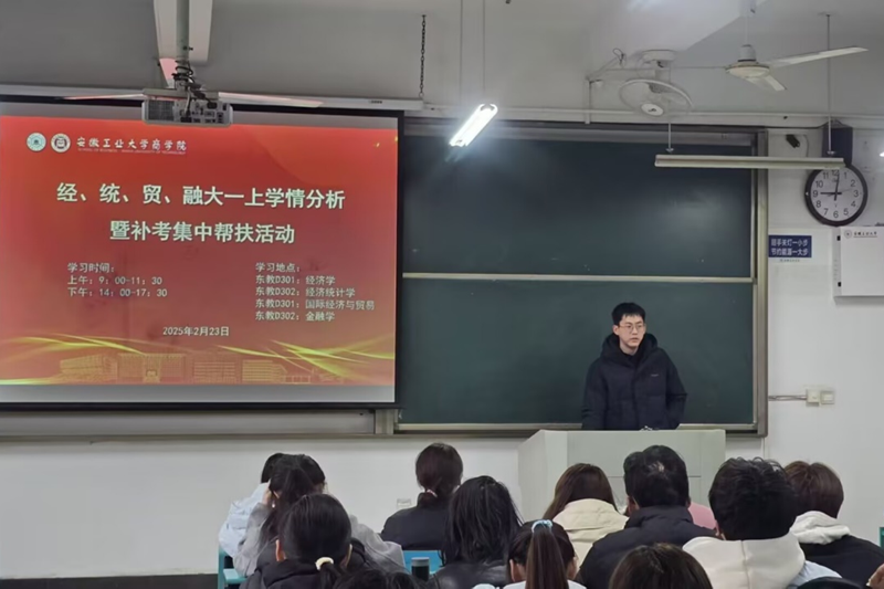 为帮助大一学生更好地应对即将到来的补考,提升学业成绩,2月23日上午,商学院大一辅导员徐韬、王伟伟在秀山校区汇文楼D301精心组织开展了“商学院大一上学期学情分析暨补考集中帮扶活动”,为同学们送上了温暖且有力的学业支持。