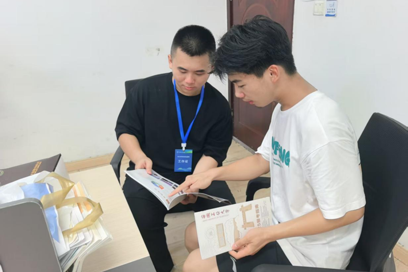 活动中,实践队员与有报考意向学生一对一交流,结合学科背景和发展需求,从兴趣、理想、前景、职业方向给理性选择建议,部分学生添加联系方式求后续指导。宣讲结束后,队伍在野寨中学“景忠”讲堂设咨询点,就“报考心仪高校”“选适合专业”“大学与中学学习区别”等问题,结合招生政策和在校体验解答,分享商学院跨学科资源与社团经验,帮学生清晰认知大学生活。