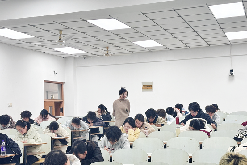 为维护考试公平公正,院学生会学习部提前规划、周密组织,严格参照期末考试标准,全面落实考试流程与考风考纪管理。考场采用“S”型座位排列,实行考生间隔就座,从空间布局上杜绝作弊隐患。监考人员恪尽职守,以高度负责的态度履行监考职责,全程细致严谨、毫不松懈;考生们则以饱满的精神状态投入考试,答题认真、检查仔细,自觉遵守考场纪律,整体考试过程秩序井然,展现出积极向上的学风和严谨诚信的应考风貌。