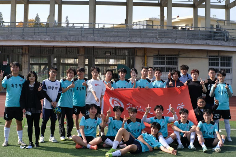 排球赛场,女排队伍的表现突出,她们凭借默契的团队配合、扎实的技术功底,斩获女排冠军。男排队员们始终保持着高昂的斗志和严谨的战术执行,夺得男排亚军。羽毛球比赛上,王艺凡在男单比赛中夺得男单亚军;邱乐朋、冯嘉琪组合在女双项目中取得女双季军;王艺凡、吴雨涵组合夺得混双季军。足球赛场上,我院男子足球队凝心聚力、奋勇争先,凭借全体队员的出色发挥与默契协作,成功问鼎新生杯冠军,彰显商院少年风采。同时,乒乓球比赛中我院也赢得了团体赛第五名的好成绩。篮球比赛中我院学子虽未摘得桂冠,但赛场上每一次全力冲刺,都将不服输的拼劲刻进了赛场,体现了体育精神。