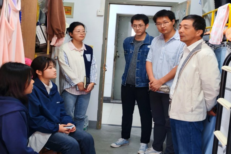 走访过程中,黄国才亲切地与新生们进行了深入交谈。他首先对新生们的到来表示了热烈欢迎,随后与学生们畅聊了住宿饮食、生活起居以及学业规划和未来理想等多方面话题,全面了解了新生入学后的生活状况和学习情况。黄国才鼓励同学们要尽快适应新的生活环境,转变角色,迎接新的挑战,并为此提供了许多有效建议。在院领导的耐心倾听和引导下,新生们逐渐敞开心扉,通过细致的解答和积极的引导,新生们更加坚定了自己迈入新阶段的信心,对即将迎来的大学旅途充满了无限憧憬。