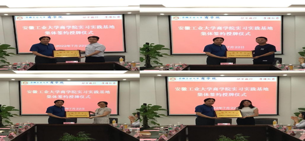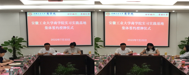 在秀山校区汇文楼C402会议室举行实习实践基地集体签约授牌仪式。方正证券股份有限公司马鞍山佳山路证券营业部总经理孟祥勇、东方财富证券股份有限公司马鞍山湖东北路证券营业部总经理张泽丰、马鞍山智信企业管理有限公司总经理刘瑛、马鞍山市华夏基石人力资源管理有限公司总经理余道霞和各公司有关负责人,SKrBT