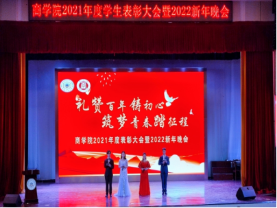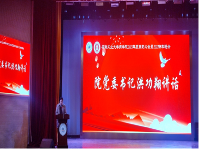 “礼赞百年铸初心,筑梦青春踏征程”2021年度学生表彰大会暨2022新年晚会在秀山校区大学生活动中心隆重举行。院党委书记洪功翔,党委副书记、副院长张虎,副院长周世军、成祖松、吴金南,学院全体辅导员老师、班主任代表及各班级学生代表参加大会。