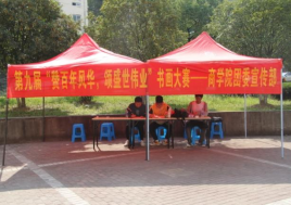 在秀山校区第六食堂前广场举办了“赞百年风华,颂盛世伟业”书画大赛。