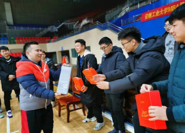 与MBA篮球队进行联谊,在安工大秀山校区新体育馆进行了一场精彩的篮球比赛。