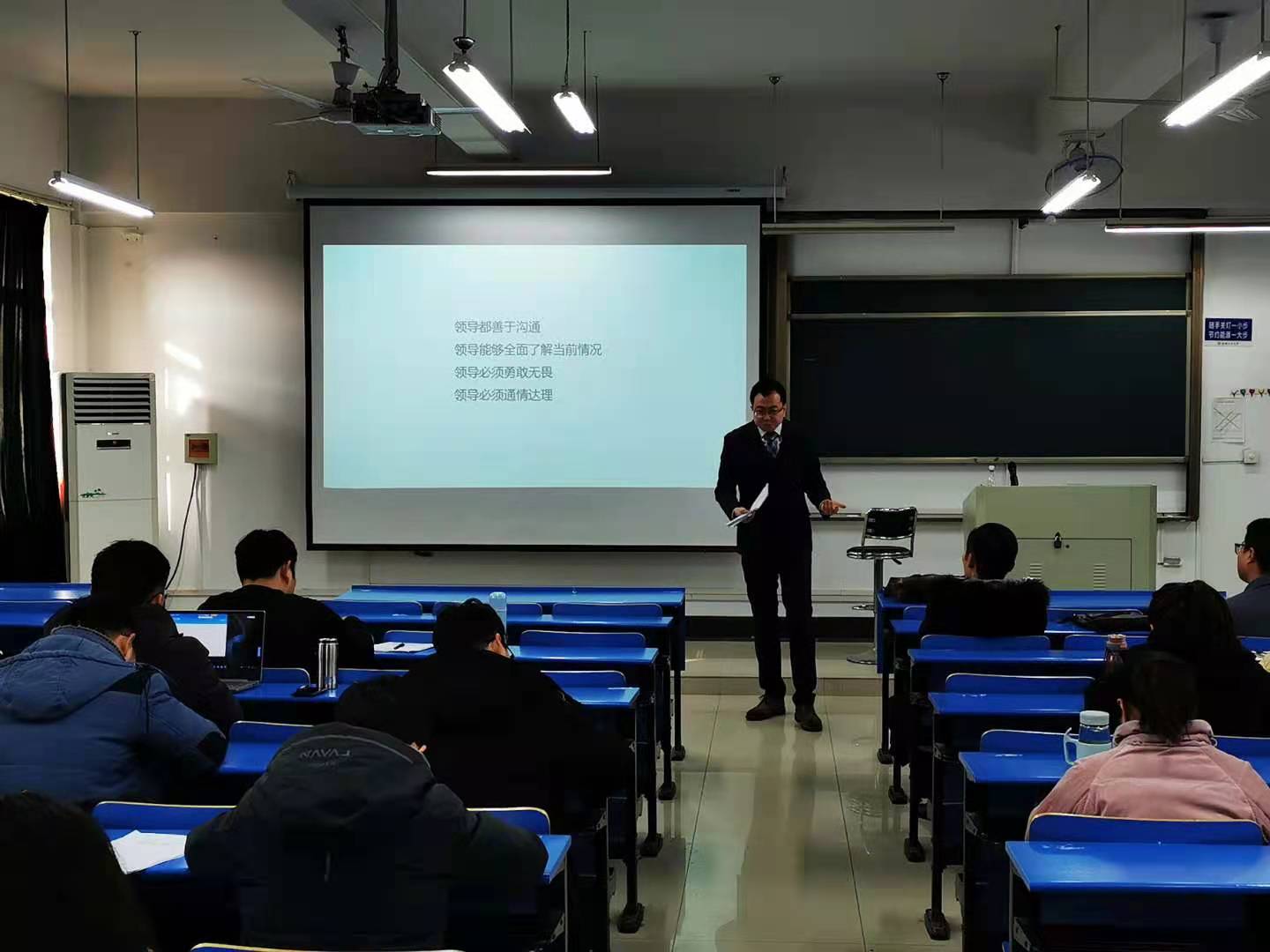 随着2019级MBA方向课程的不断深入,在系统学习了管理知识、管理工具、管理技能以及相关的金融等课程之后,如何提升MBA学员领导意识、成为合格的企事业单位管理者这一课题,显得尤为重要。本学期按照中心课程设置要求,所开设的《领导艺术》课程邀请了马鞍山统力回转支承有限公司侯舒皓总监,就领导艺术这块的研究成果和MBA学员们共同分享。因为新冠疫情原因,侯总两次授课分别以课堂和网络授课形式开展。