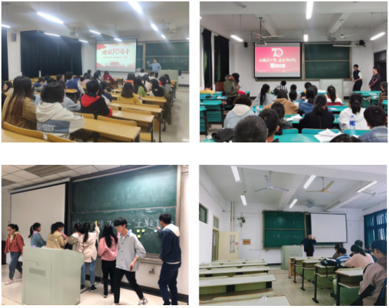学院的班主任和辅导员根据各班级实际情况,紧紧围绕“礼赞新中国,奋进新时代”的主题,并结合“不忘初心、牢记使命”主题教育,充分发挥学生主体性和主动性,组织开展了“颂师恩,咏校情,效祖国”青春告白、“我与祖国共奋进——国旗下的演讲”、《我和我的祖国》观影、党史国史知识竞答、毕业班座谈会等形式新颖、内涵丰富、成效显著的班会活动。同学们在亲历活动后更加深切地感受到新中国70年来的辉煌巨变,纷纷表示要志存高远,奋勇拼搏,努力掌握建功立业的真本领,为肩负起时代重任夯实基础。
