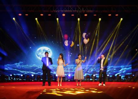 点点星辰凌于夜空,灼灼韶华绽放光彩。国标舞《花火》展现了舞者们翩如兰苕翠、宛如游龙举的曼妙优美;留学生代表演唱的歌曲《风吹麦浪》则音符欢快,旋律动人;歌舞《扇舞丹青》飘逸如画,独具风韵;歌曲串烧《声入人心》深情交融,扣人心弦;T台秀《青春印象》精致典雅,靓丽多彩。