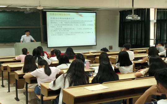 企业家大讲坛,做《注册会计师行业发展的历史、现状和前景》主题讲座,讲座由会计系主任顾远主持,2017级会计学和审计学专业同学聆听了讲座。