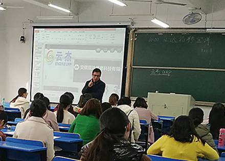 宣讲会上,安徽亘达信息科技有限公司人事主管张经理向同学们介绍了企业历史,企业理念、业务范围、招聘计划、招聘流程、岗位及薪资等内容,同时张经理介绍了企业与安徽工业大学近几年来合作研发的经历,与毕业生们分享如何科学地制定个人职业发展、规划就业。宣讲会现场学生认真聆听、响应积极、气氛热烈,多次响起掌声,效果明显,宣讲会后多名学生和企业双方达成就业意向。