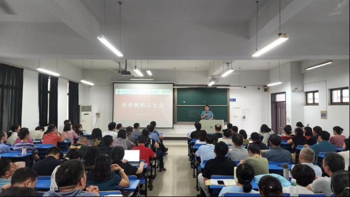在汇文楼D507召开新学期教职工大会,全院教职工参加了会议。会议由院副院长李伟军主持。