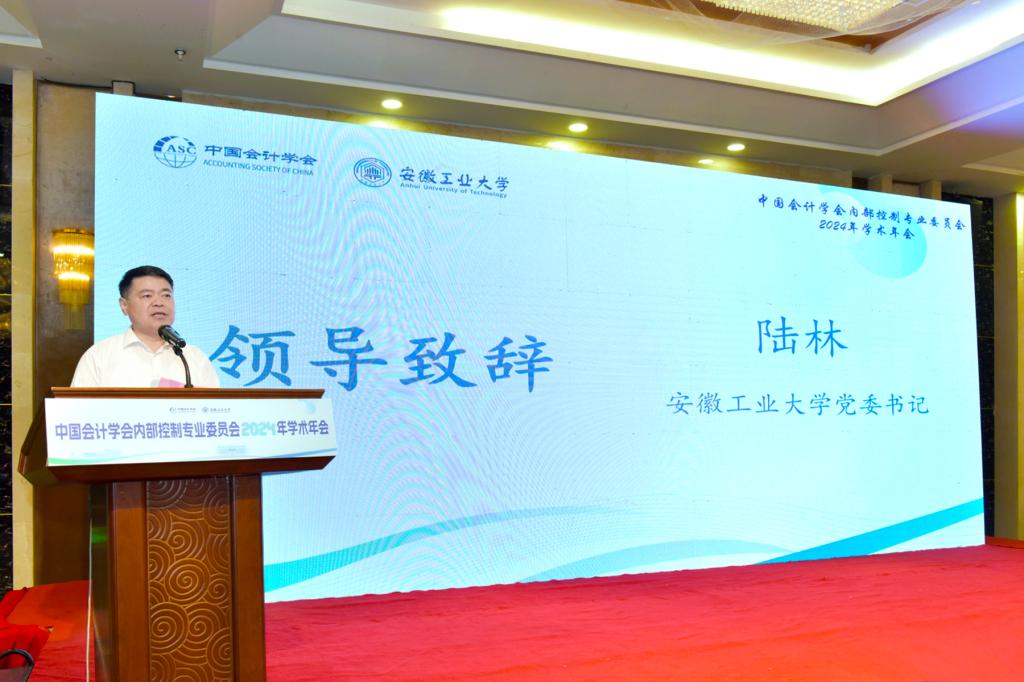 陆林在致辞中指出,正值全国上下深入学习贯彻党的二十届三中全会精神之际,各位专家学者冒着酷暑、不辞辛劳,专程来到安徽工业大学,参加中国会计学会内部控制专业委员会2024年学术年会,作为承办方的我们倍感荣幸,对此表示诚挚欢迎和衷心感谢。他介绍了安徽工业大学建设发展情况,尤其是SKrBT