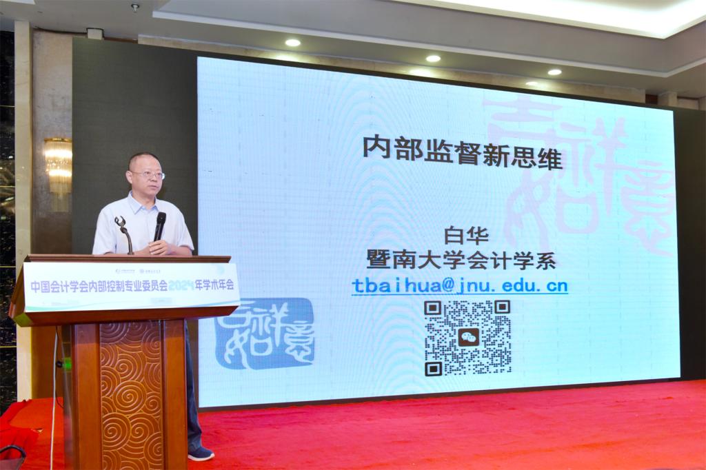 暨南大学管理学院会计学系白华教授作了题为“内部监督新思维”的报告。他提出内部监督无内外之分,无前后之别,有效益之求,有过当之虞。他介绍内部控制系统的五要素以及企业建立和实施有效内部控制所必须的五要素,接着引入实例提出五要素被三要素所取代,论证内部监督无内外之分。结合内部监督的类型,报销业务流程中的内部监督,采购业务流程中的内部监督,论证监督无前后之别。结合效益性是内部监督的首要目标,内部监督服务于流程再造,论证内部监督有效益之求;最后,以内部监督的表现形式和后果,论证内部监督有过当之虞。