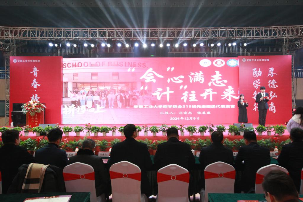 会上,校“十佳班级”会213班学生代表讲述了先进班级创建的主要事迹,统211班刘婧华代表获奖先进个人分享了成长奋斗的历程,中国电信马鞍山分公司党委书记、总经理叶长根校友以及北京盈科(合肥)律师事务所股权高级合伙人王其祥校友分享了求学成长的奋斗经历。