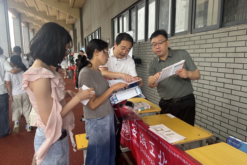 其他班子成员深入咨询现场,与考生及家长亲切交流。招生宣传是学校人才培养的“第一关口”,通过与生源中学的面对面交流,既能精准传递学校的办学理念,也能切实了解考生需求,为优化招生策略提供依据。各成员对学校招生政策进行了宣讲,并向考生和家长进行专业推介,解答他们最关心的问题。