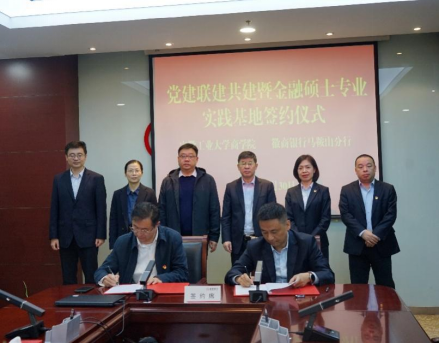 党委与徽商银行马鞍山分行党委党建联建共建暨金融硕士专业实践基地签约与挂牌仪式”。