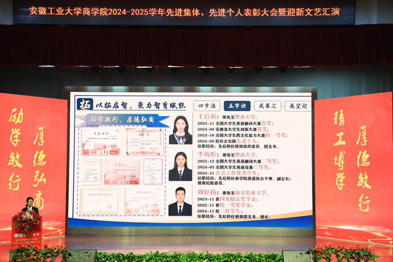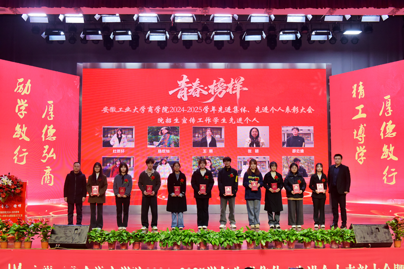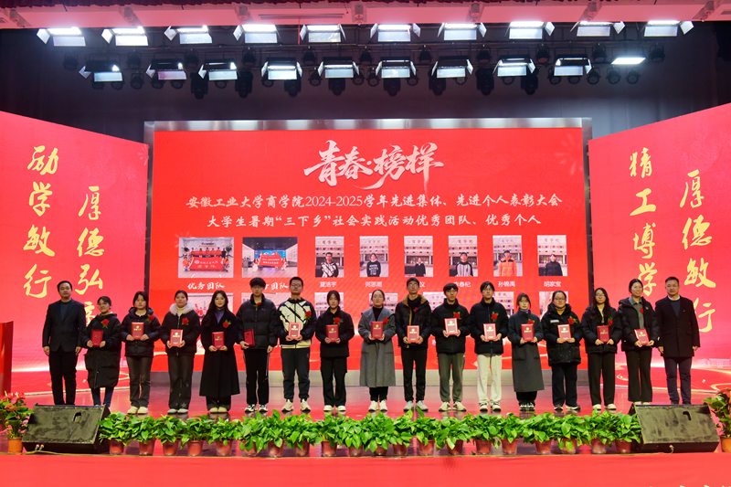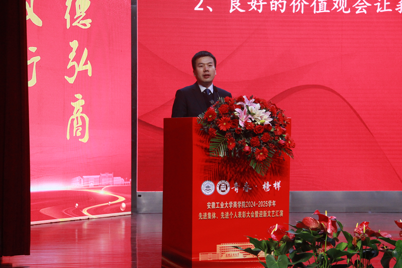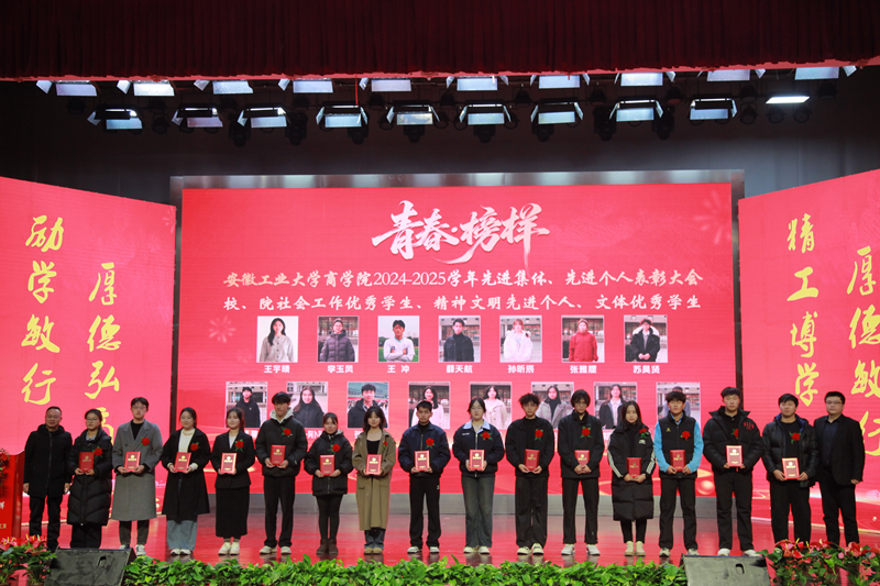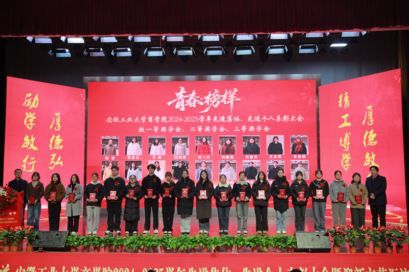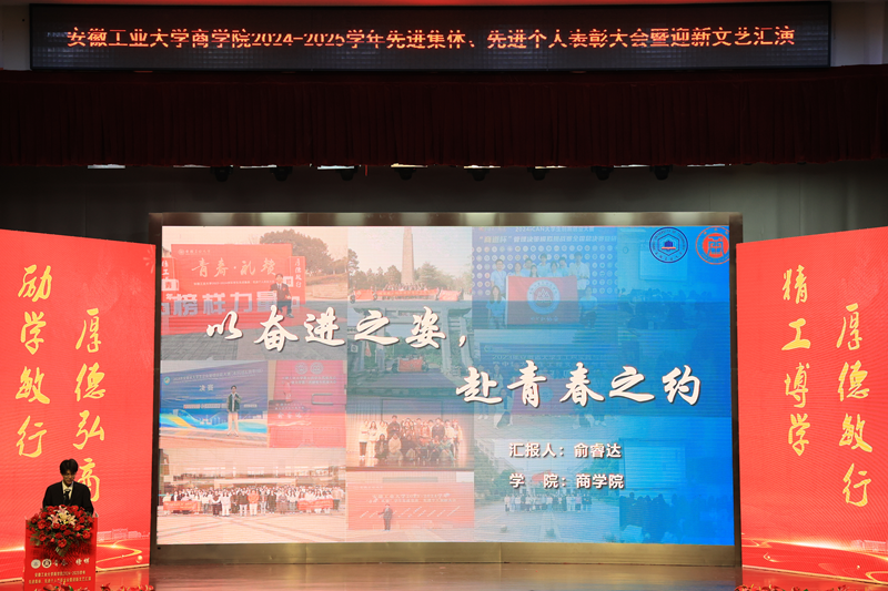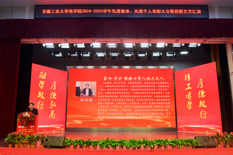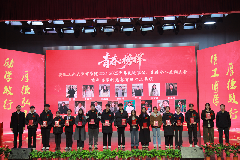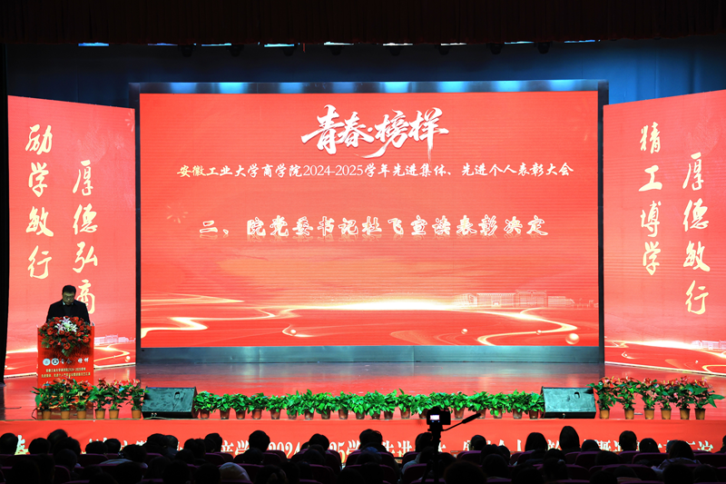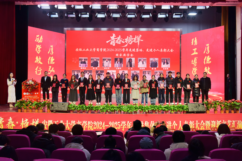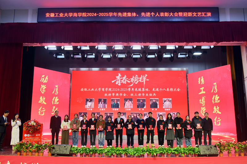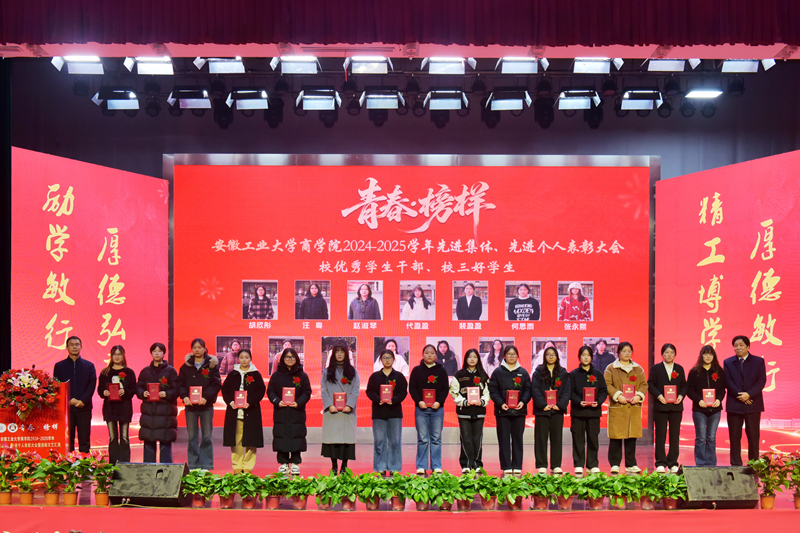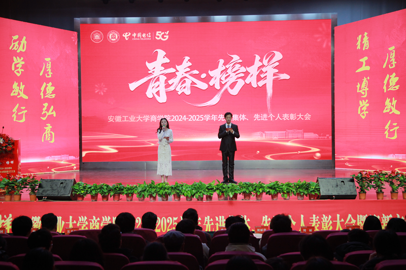 2024—2025学年“青春·榜样”先进集体、先进个人表彰大会暨迎新文艺汇演在秀山校区大学生活动中心报告厅举行。校党委副书记王俊出席大会并为获奖代表颁奖。中国电信马鞍山分公司总经理张磊,中国电信马鞍山分公司政企部主任胡志文,全体院领导,优秀校友代表,各系室主任(党支部书记),各学位点负责人,受表彰的先进集体、先进个人代表,教师和高年级学生代表,2025级新生参加大会。