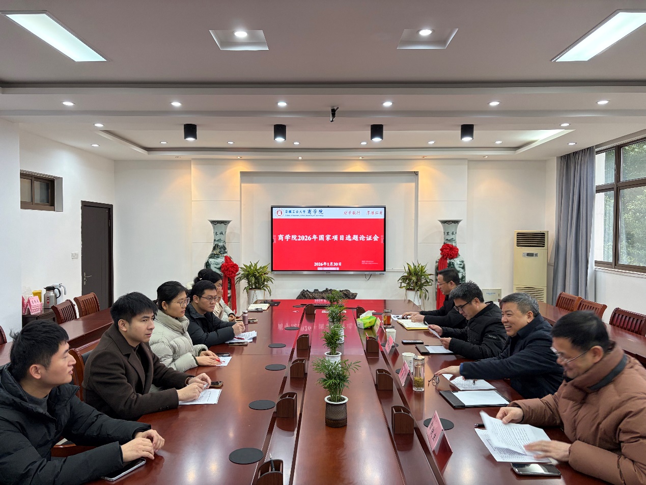 1月30日下午,商学院组织召开了2026年国家项目选题第二次线下论证会。会议特邀合肥工业大学梁昌勇教授和安徽师范大学马长伟教授作为点评专家。院长章铁生、副院长周世军和申报老师参加了会议,论证会由周世军主持。