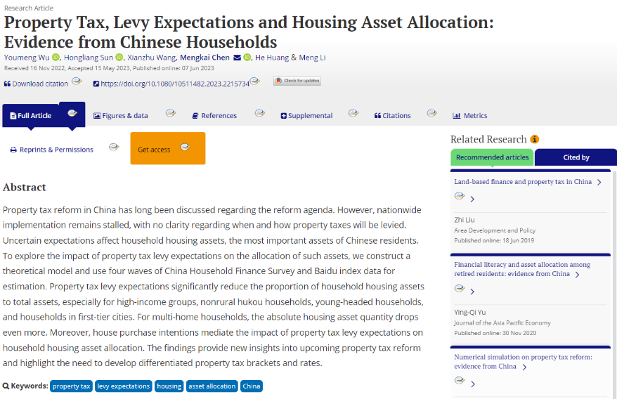 房地产经济与金融研究团队在国际知名期刊《Housing Policy Debate》上发表房产税征收预期的家庭资产配置效应最新研究成果。《Housing Policy Debate》是住房研究领域国际知名老牌SSCI期刊,创办于1990年,2022年影响因子2.420。SKrBT