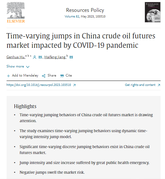 胡根华副教授在经济学国际权威期刊《Resources Policy》上发表我国原油期货市场跳跃行为的最新研究成果。《Resources Policy》为中国科学院经济学大类一区Top期刊,2022年影响因子10.2。SKrBT