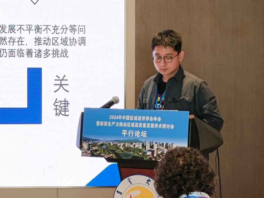 研究生丁宇航同学在“空间分析与协调发展”的平行论坛上进行了题为《产业融合有利于区域协调发展吗?——基于空间计量和社会网络分析》的汇报。丁宇航同学的汇报内容详实,分析方法新颖,得到了现场专家学者的肯定和好评。