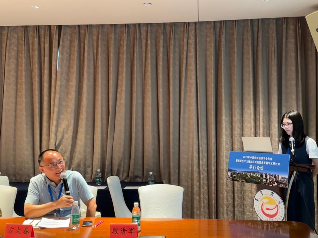 22日下午,在“新质生产力与高质量发展”平行论坛的上半场,方大春作了题为《我国经济高质量发展的组态路径研究》的精彩汇报,受到了与会专家学者的高度关注和好评。在此次论坛的下半场,方大春受邀作为主持人和点评人,对其他参会人员的现场汇报进行了精彩点评,为论文汇报者提供了宝贵的建议。