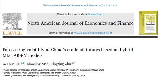 胡根华副教授在《The North American Journal of Economics and Finance》上发表我国原油期货市场波动预测的最新研究成果。该期刊是经济学和商业与金融学领域的国际知名期刊,2023-2024年最新影响因子3.8,在WOS期刊分区中为SSCI一区期刊,金融学领域排名38/233,经济学领域排名84/600,在ABS二类期刊、ABDC国际期刊排名B类。SKrBT