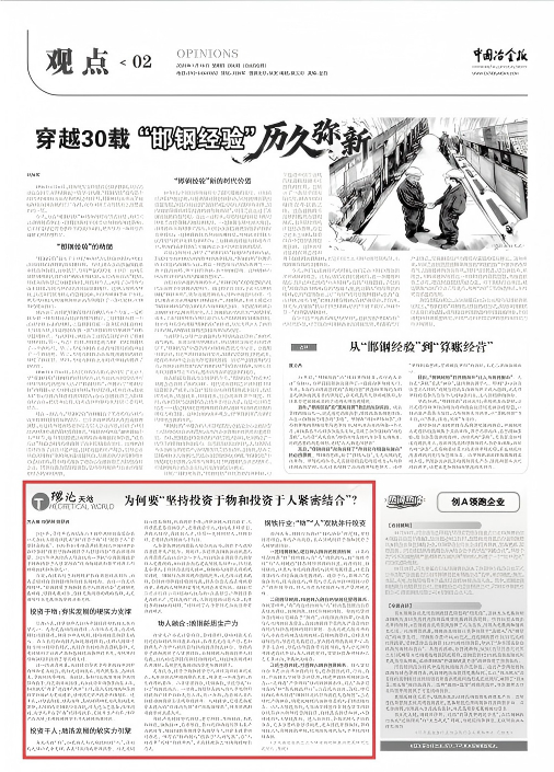 面向未来,钢铁行业要以“物人融合”新逻辑,重塑投资理念,再造产业优势,真正实现投资于物和投资于人的紧密结合。