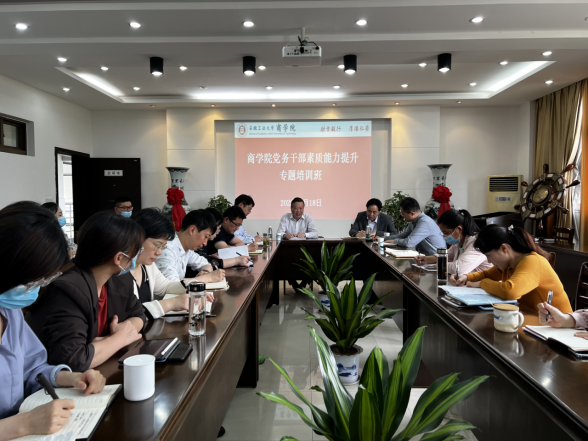 5月18日下午,校党委副书记祖明为商学院干部培训班作辅导报告。商学院党委委员、班子成员、党支部书记、辅导员和办公室行政管理人员参加学习。报告会由商学院党委书记洪功翔主持。