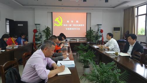 2017年5月12日上午,在习近平总书记视察安徽一周年之际,商学院召开党委中心组(扩大)学习会,深入学习贯彻习近平总书记视察安徽重要讲话精神,专题学习研讨如何推进学院党委和各支部“两学一做”学习教育常态化制度化,并就开展“讲政治、重规矩、作表率”专题教育“三个一”活动进行相关布置安排。会议由学院党委书记黄国才主持,院党委委员、党支部书记参加了学习会。