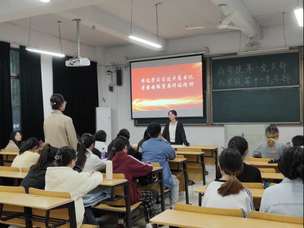 为深入学习领会习近平总书记考察安徽重要讲话精神,10月28日下午,商学院学生第一、十一党支部在汇文楼D102召开会议,专题学习习近平总书记考察安徽重要讲话精神。学生第一党支部书记肖梦雨主持,支部全体党员参加。