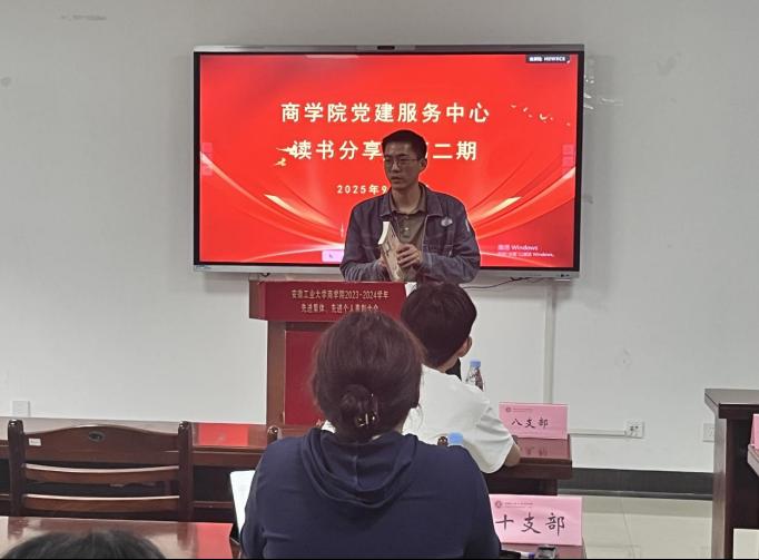 为庆祝中华人民共和国成立76周年,弘扬爱国主义精神,营造浓厚的书香氛围,9月29日下午,商学院党建服务中心在汇文楼B114室举办“书香党建”第二期读书分享会。学院党建服务中心徐韬老师、第七至第十二党支部师生党员代表共20余人参加活动。