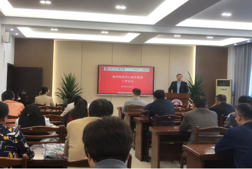 为全面落实立德树人根本任务,提高商学院研究生培养质量,10月23日下午,学院在汇文楼B204召开了全院研究生导师、任课教师大会。院长章铁生、副院长李伟军、全院研究生导师、研究生任课教师以及研究生教育与管理办公室全体人员参加此次会议。会议由李伟军主持。