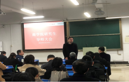 2024年3月18日下午,商学院在秀山校区汇文楼D509召开研究生硕士导师工作会议。学院领导、全体硕士生导师、研究生办公室人员、辅导员王琴老师、郝乐老师参加了此次会议。会议由副院长李伟军主持。