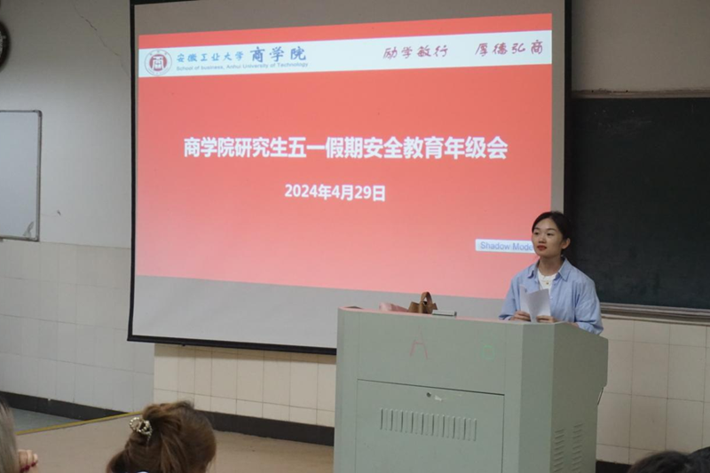 4月29日晚,商学院在秀山校区东教一阶103召开研究生五一假期安全教育年级会,研究生辅导员和各年级研究生参加了此次会议。会议由辅导员郝乐老师主持。