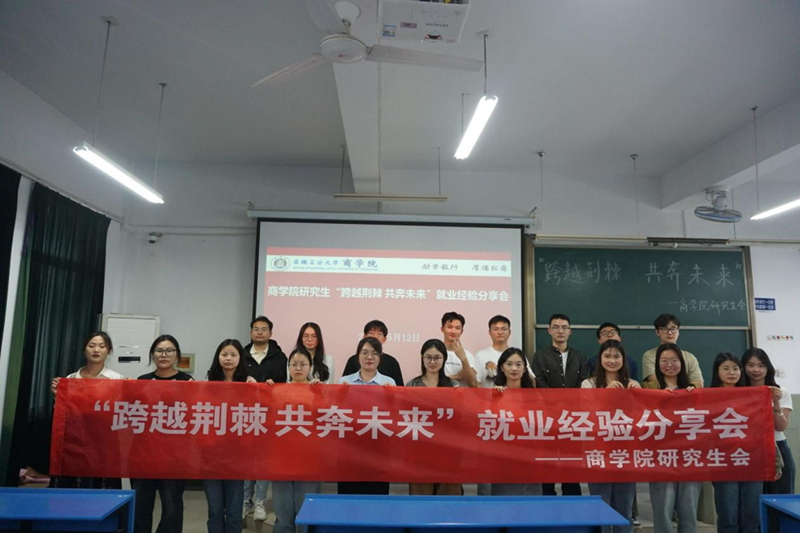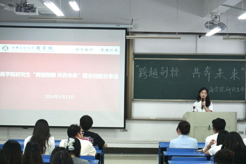 5月12日下午,商学院在汇文楼D507举办“跨越荆棘,共赴未来”就业经验交流分享会。研究生辅导员郝乐老师,一、二年级研究生参加了本次会议。会议由院研会干事查艳秋主持。