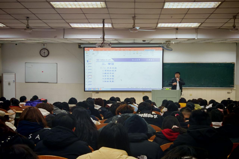 为加强师生交流,引导学生思想,促进学生个人成长与发展,12月18日晚,我院于阶教103举办2024级新生年级会。会议邀请商学院党委副书记、纪委书记、副院长蒋磊担任主讲人。
